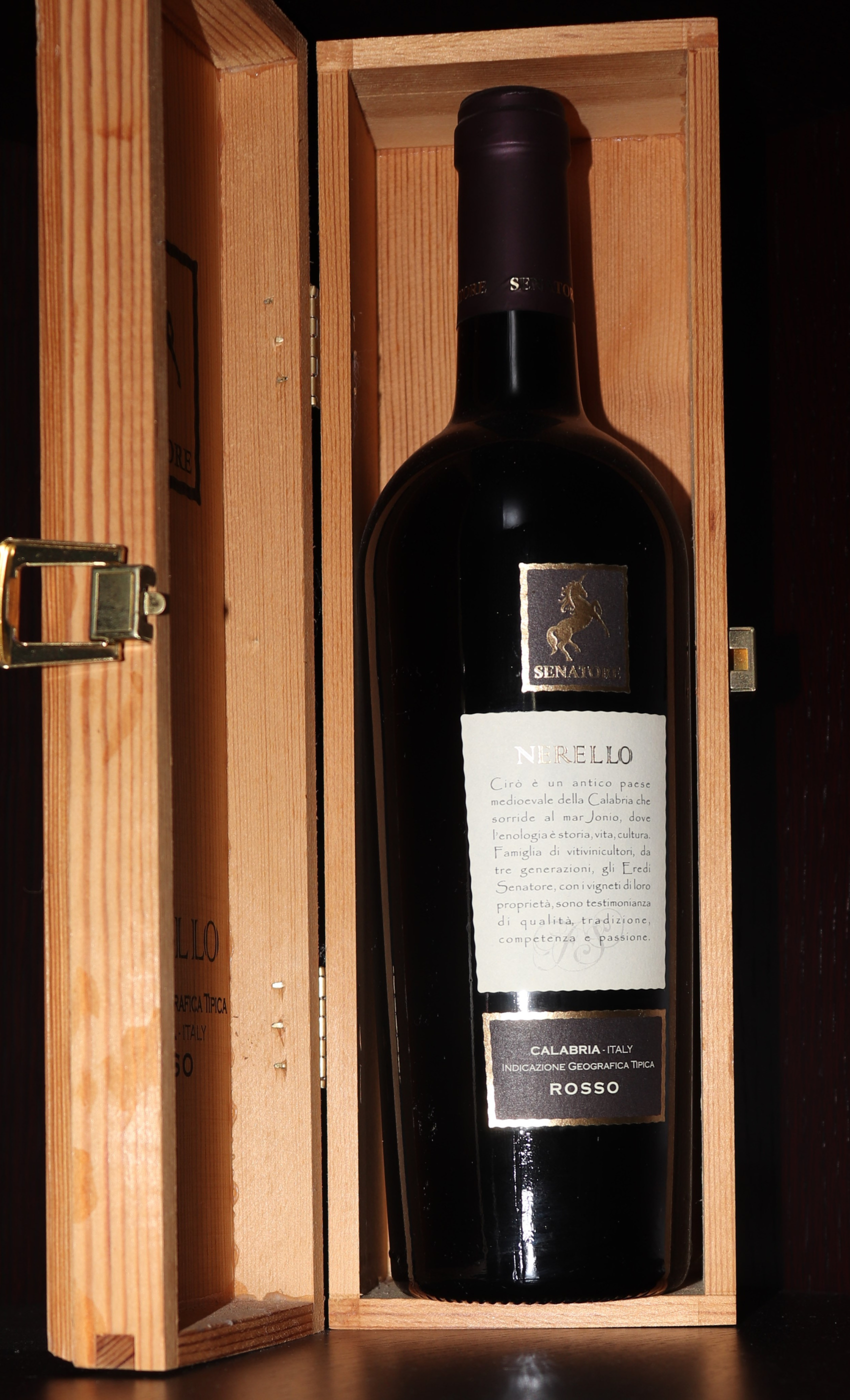 Keď vchádzate dlhou cestou k bielej usadlosti vinárstva Senatore Vini lemovanej viničom, máte pocit že ste vstúpili do iného sveta. Nádherný priestor ako z romantického filmu, starostlivo upravené okolie, krásne vinice... Už štvrtá generácia vinárov sa venuje vínu s veľkou úctou k tradíciám. Na začiatku 20. storočia Francesco Senatore a Giuseppe Sculco založili svoje prvé vinárstvo v oblasti Corfu Vecchiu v Cirò. Jeho syn Antonio začal rozvíjať spoločnosť a v 40-tych rokoch dal postaviť kamennú vínnu pivnicu, ktorá bola asi pol storočia jej sídlom. V roku 2005 ďalšia generácia rodiny Senatore otvorila v Cirò Marina nový moderný komplex na spracovanie hrozna s rozlohou 4500 metrov štvorcových, ktorý je vybavený najinovatívnejšími systémami zariadení na výrobu vína novej koncepcie. Spoločnosť vlastní 40 hektárov pôdy, z toho 30 ha tvoria vinice a vyrába 280 000 fliaš ročne. Za posledných 6 rokov získalo vinárstvo viac ako 30 ocenení. Dnes vedie vinárstvo ďalší člen rodiny Raffaele Senatore. Láska ku krajine a tradíciám ho inšpirovala, aby sa naplno a s vášňou venoval výrobe vína a šíril odkaz značky Senatore. Mytologický jednorožec v logu spoločnosti je v tomto duchu symbolom tradície, vzácnosti, krásy a jedinečnosti.